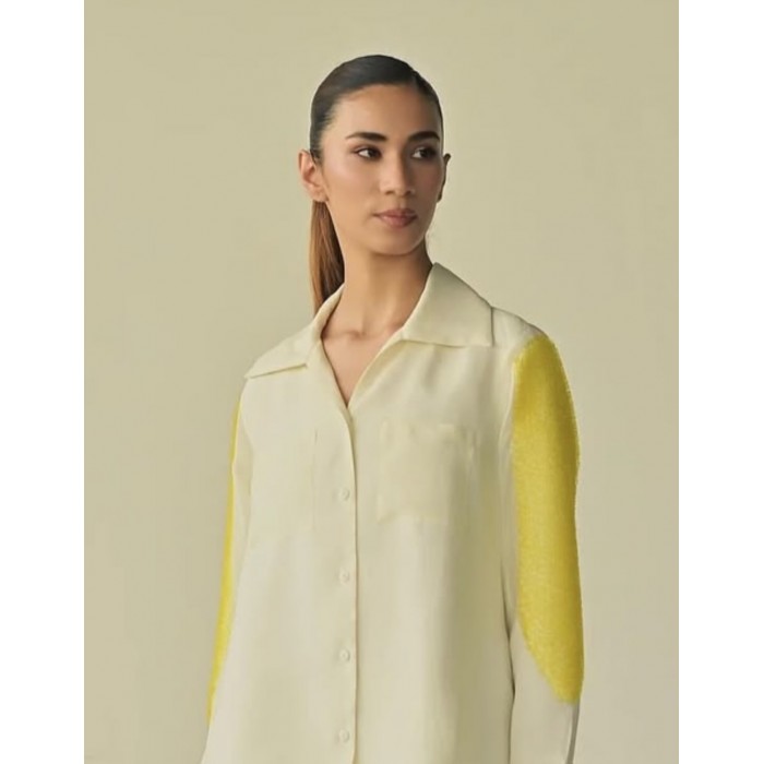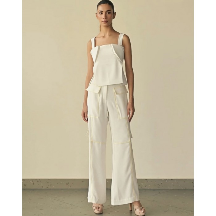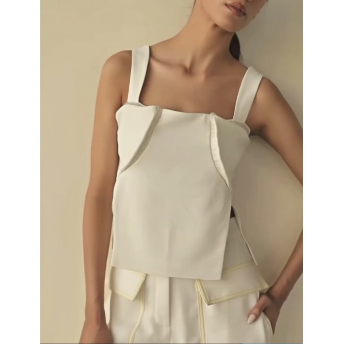 White contoured slit strap top with elevated 3D PVC at the bust.